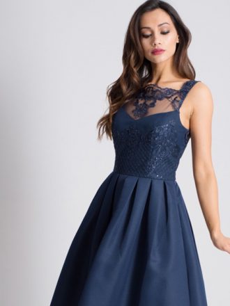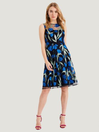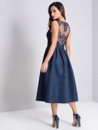 پیراهن تمام دانتل ابریشم گل آبی